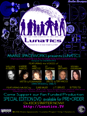 I've been posting for some time in FSM about my Lunatics free culture project, and I really hope to post about some of the free software we are using on it, though I've been so busy with it, I haven't had much time to write. After a failed attempt to raise all the funds to support the production a pilot, we decided to make another attempt to get just the money we need for the next step – which is to produce the voice and audio (it'll also include a fairly nice 2D animatic).